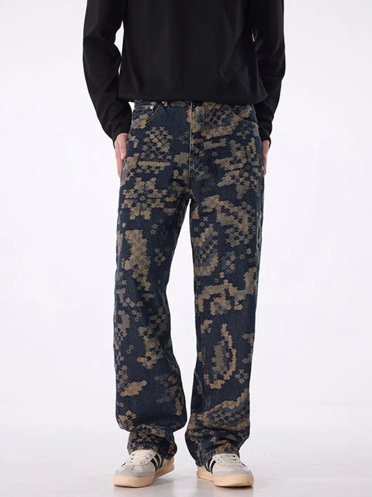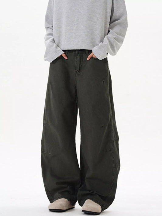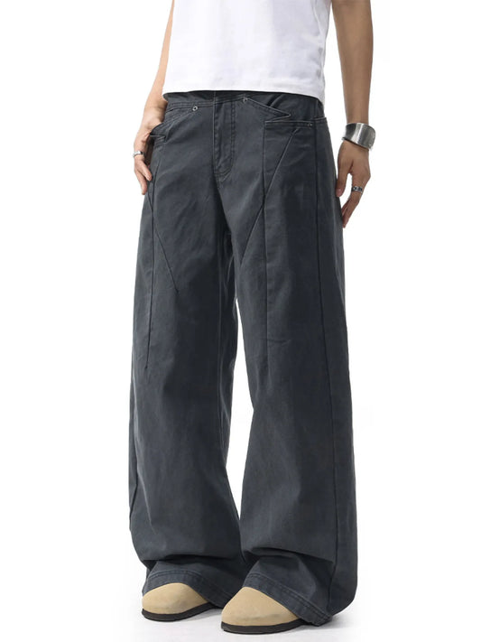 Men's Vintage Wide Leg Utility Jeans with Multi-Panel Design
