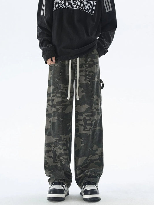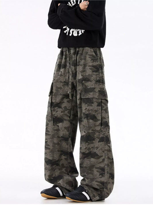 Men's Plus Size Camouflage Cargo Pants with Drawstring