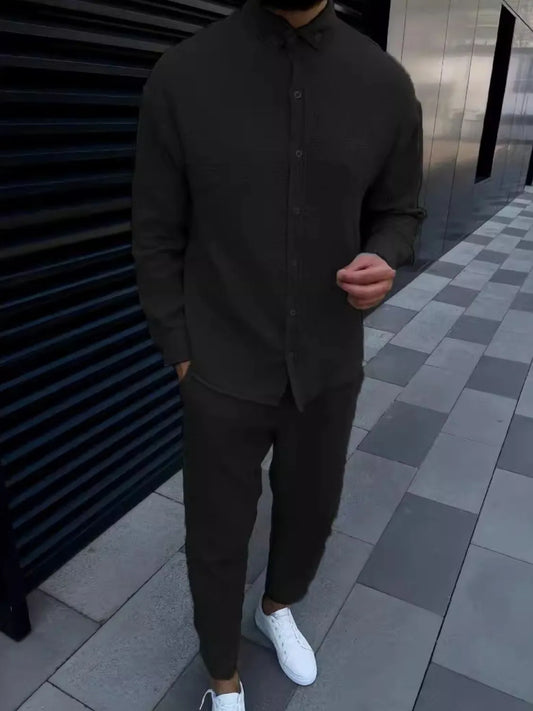 Men's Button Down Long Sleeve Shirt and Pants Set
